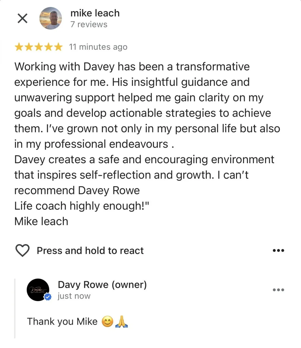 See you soon! You're All Booked In A confirmation should be in your emails. Here's some of our client testimonials... Some More Reviews